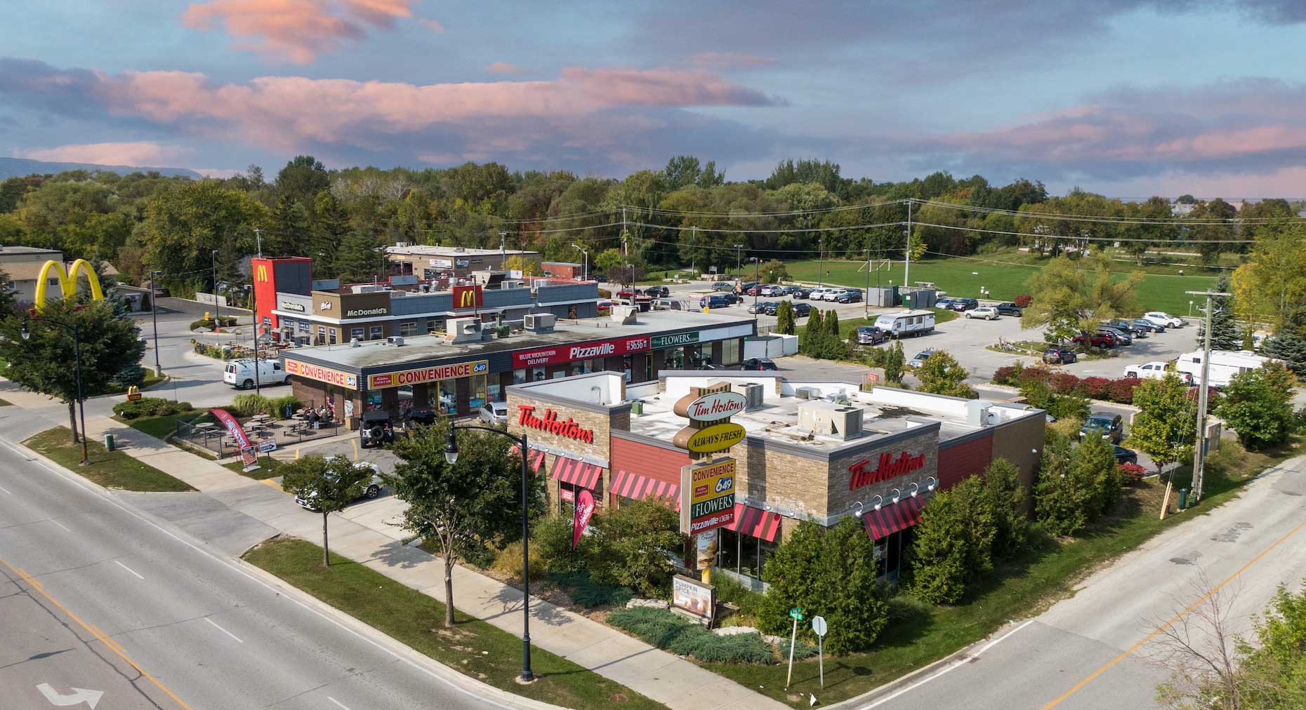 Located at 281 First Street in the heart of Collingwood, this well-positioned 6,810 square foot commercial plaza offers strong visibility and steady traffic. The property consists of two buildings and is anchored by a modern 3,200 sq ft Tim Horton’s, constructed in 2014 as part of a redevelopment led by managing partner Charis Developments.